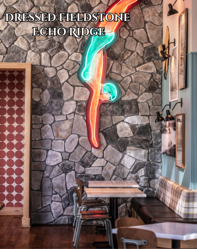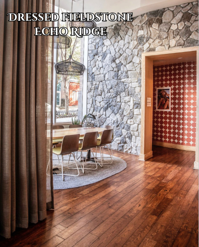 The rugged look of Dressed Fieldstone complements any natural environment. Its rich texture and range of color enhance a multitude of architectural designs.